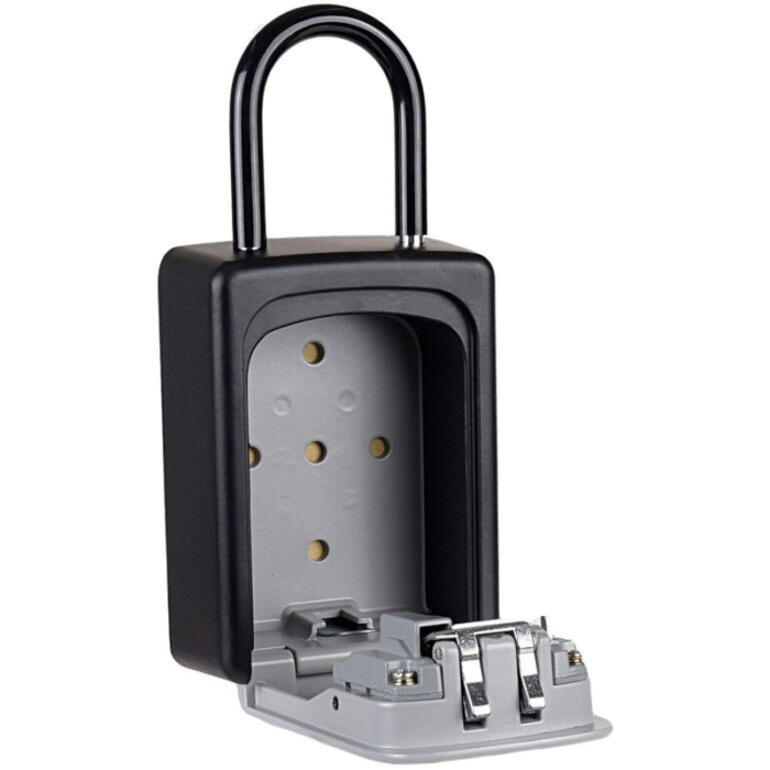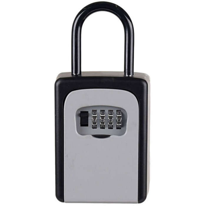 Práctica y segura, diseñada para guardar llaves u objetos pequeños con total confianza. Cuenta con combinación numérica regulable y un arco tipo candado recubierto que permite fijarla fácilmente a rejas, puertas, portones o vehículos. También incluye orificios traseros y kit de tornillos para instalarla en la pared si preferís dejarla fija. Fabricada en material resistente, es ideal para mantener tus llaves protegidas en casa, trabajo o durante actividades al aire libre.
