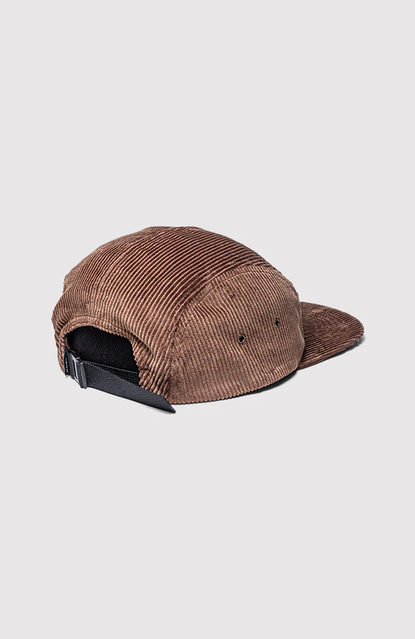 Gorra cinco paneles confeccionada en tela corderoy color negro. Cuenta con visera plana, ojales metálicos laterales para mayor ventilación y un parche frontal con el logo O’Neill California.