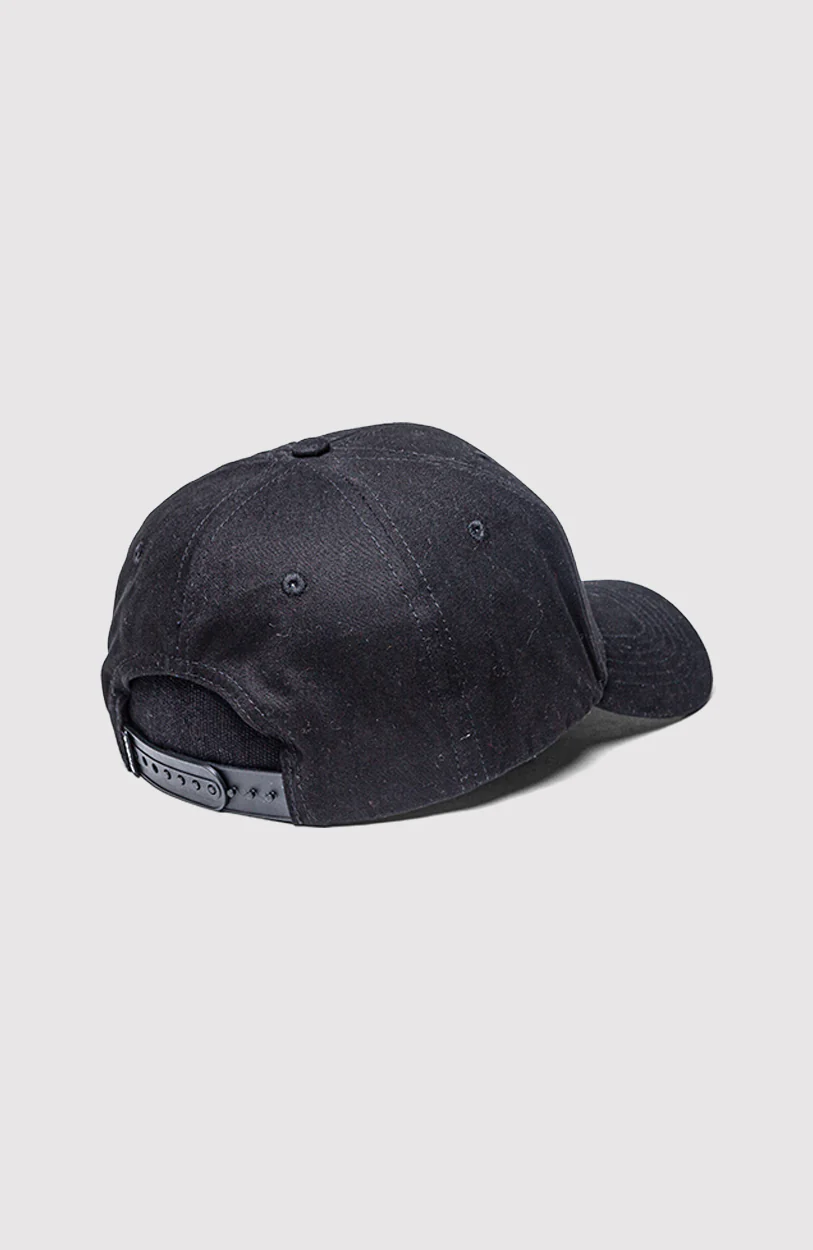 Gorra clásica de seis paneles en colores azul marino y negro, confeccionada en algodón. Presenta una visera curva, ojales bordados para ventilación y cierre ajustable en la parte trasera. En el frente destaca un parche bordado con diseño de sol y el logo de O’Neill.