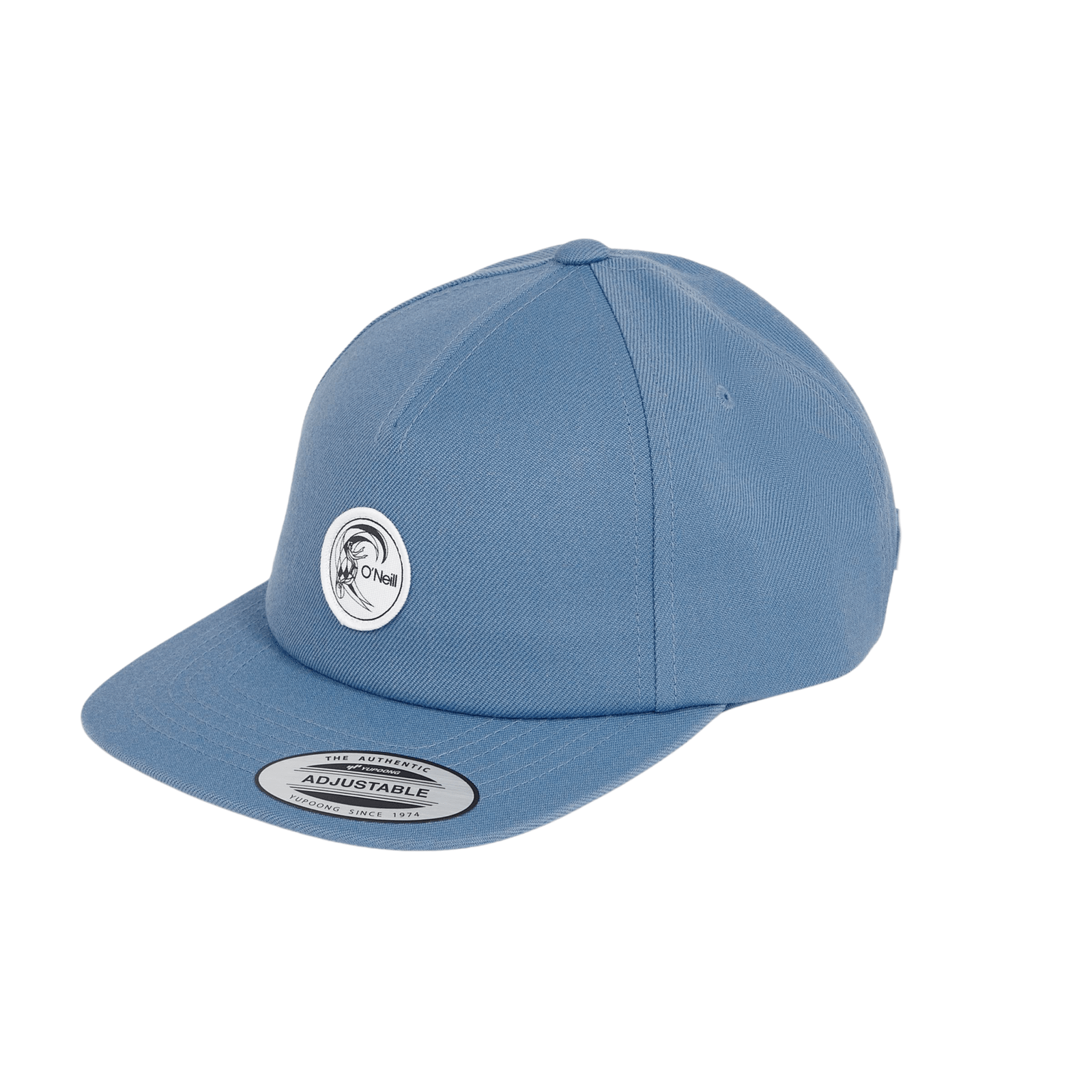 Gorra de seis paneles confeccionada en algodón twill. De color negro, cuenta con visera curva, ojales bordados para ventilación y cierre ajustable trasero. El frente se destaca con un parche gráfico con logo O’Neill y diseño de olas y sol.