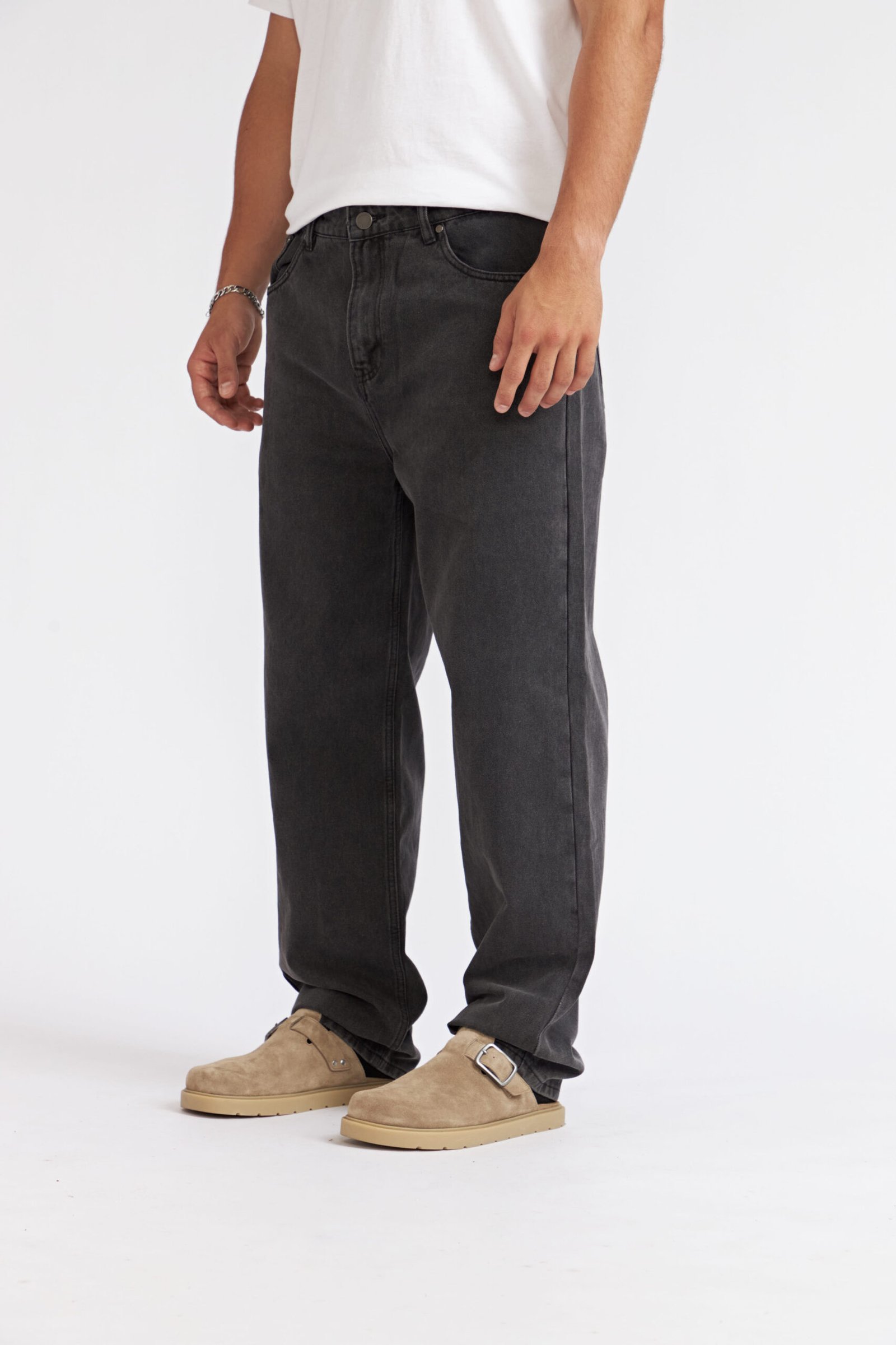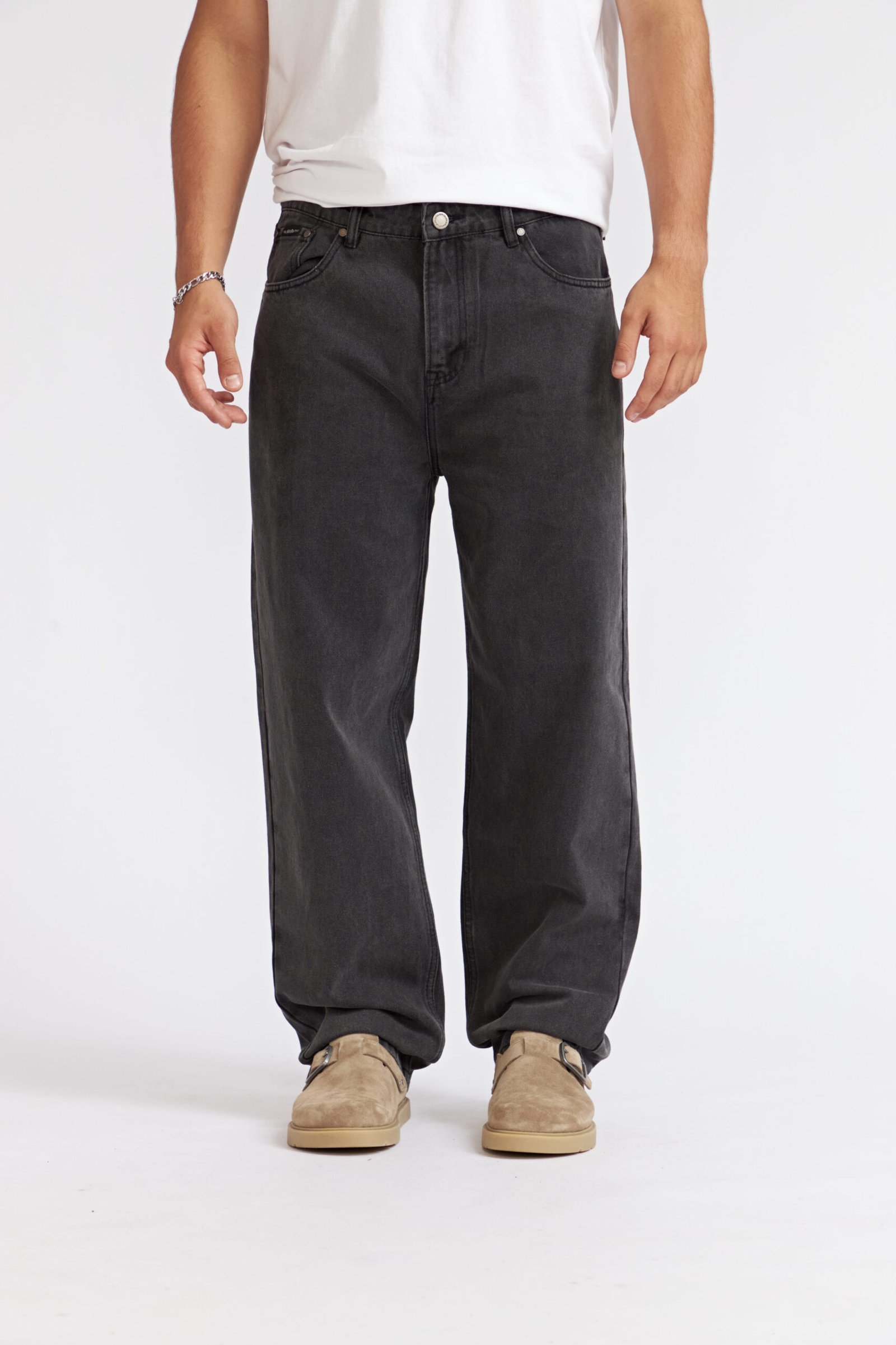 Confeccionados en denim de algodón orgánico de 15 oz., estos jeans ofrecen una estructura resistente y duradera, manteniendo la suavidad y el compromiso con materiales sustentables. Su ajuste baggy es amplio desde la cintura hasta abajo, brindando libertad total de movimiento y un silueta relajada inspirada en la cultura skate y surf.