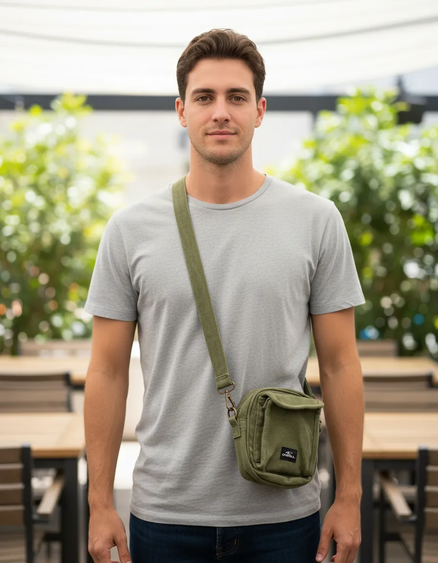 El morral O’Neill Cross Over Satchel es un accesorio compacto para el uso diario, confeccionado en 100% algodón. Cuenta con un bolsillo frontal con botón a presión, cierre con tirador metálico y una correa ajustable con accesorios metálicos, ideal para llevar tus objetos esenciales con estilo.